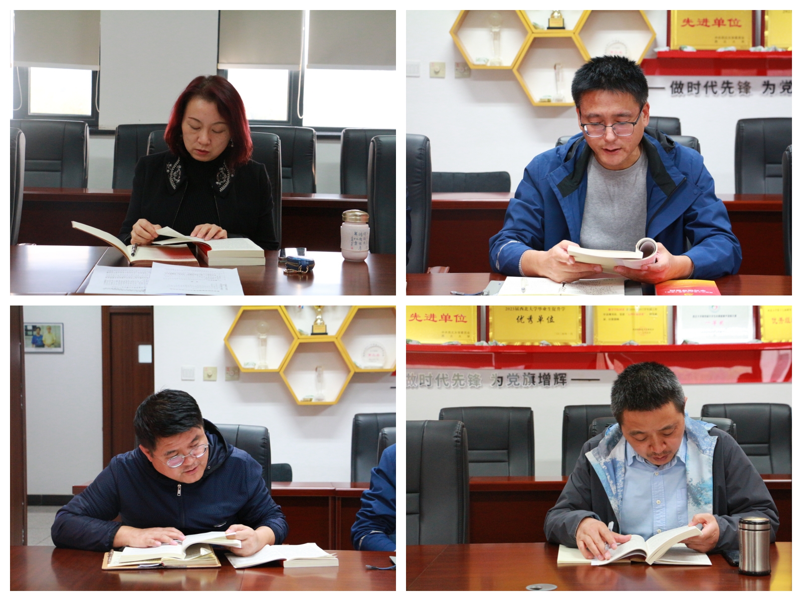党委副书记、院长张瑞,党委副书记田和军,党委委员、副院长夏志明,副院长张莉玲,党委委员、副院长邵勇,工会主席贾建分别领学了《党的二十届三中全会<决定>辅导学习百问》中“为什么要以实绩实效和人民群众满意度检验改革?”、“为什么要完善高校毕业生、农民工、退役军人等重点群体就业支持体系?”、“为什么要完善涉外国家安全机制?”、“怎样理解树立和践行正确政绩观,健全有效防范和纠治政绩观偏差工作机制?”、“为什么要丰富防治新型腐败和隐性腐败的有效办法?”和“如何理解健全加强对“一把手”和领导班子监督配套制度?”等章节内容。
