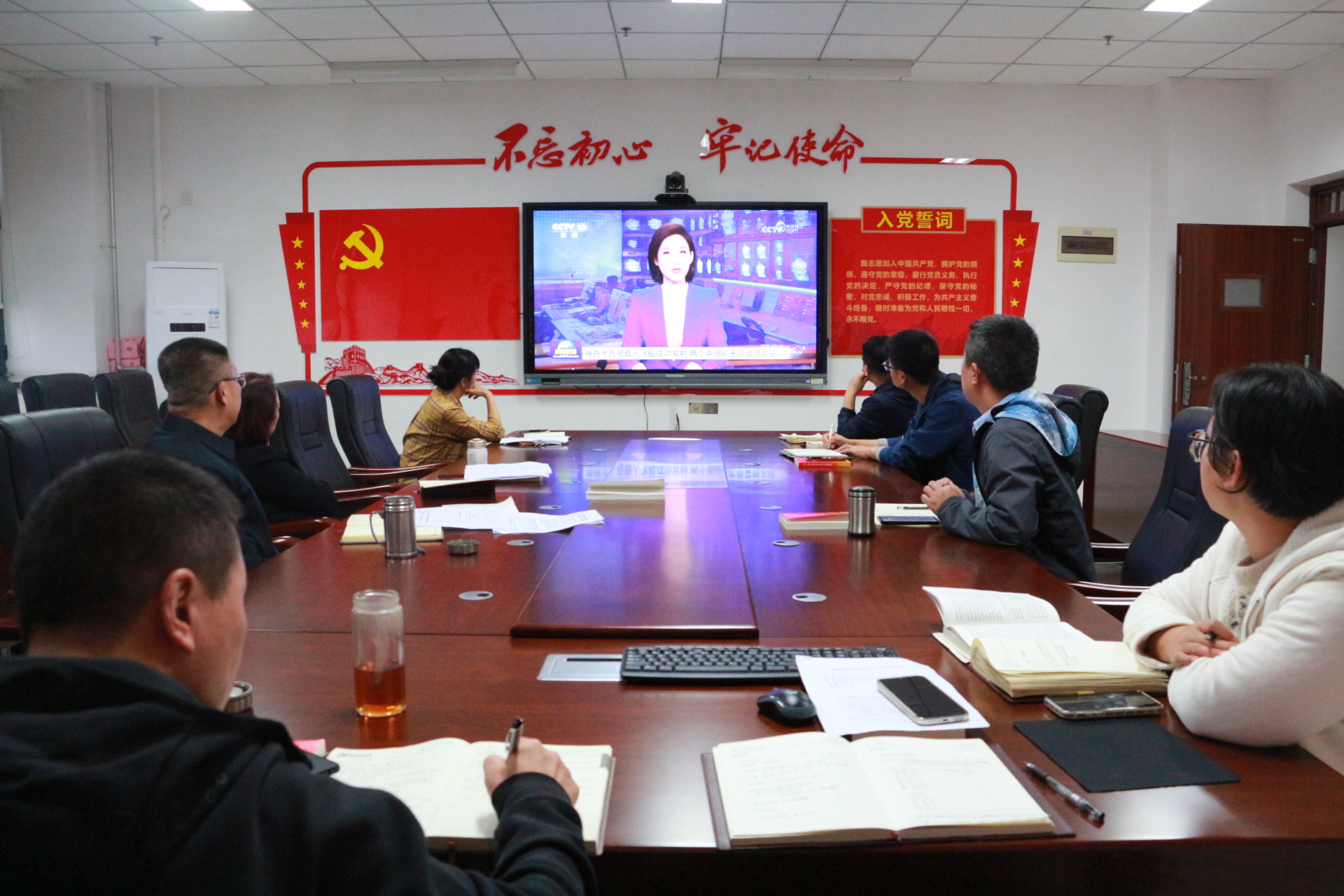 与会同志还集体学习了“习近平总书记在国家勋章和国家荣誉称号颁授仪式上的讲话”,并集体观看“神舟十九号载人飞船成功发射 两个乘组航天员会师太空”新闻报道学习视频。