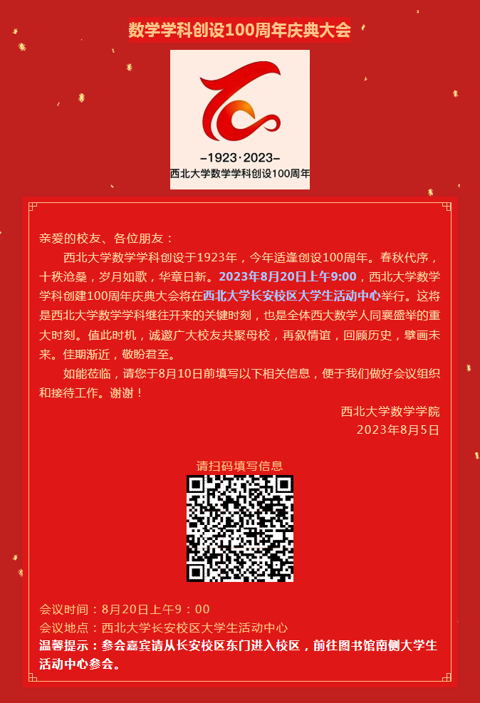 9499www威尼斯数学学科创设100周年庆典大会参会回执
