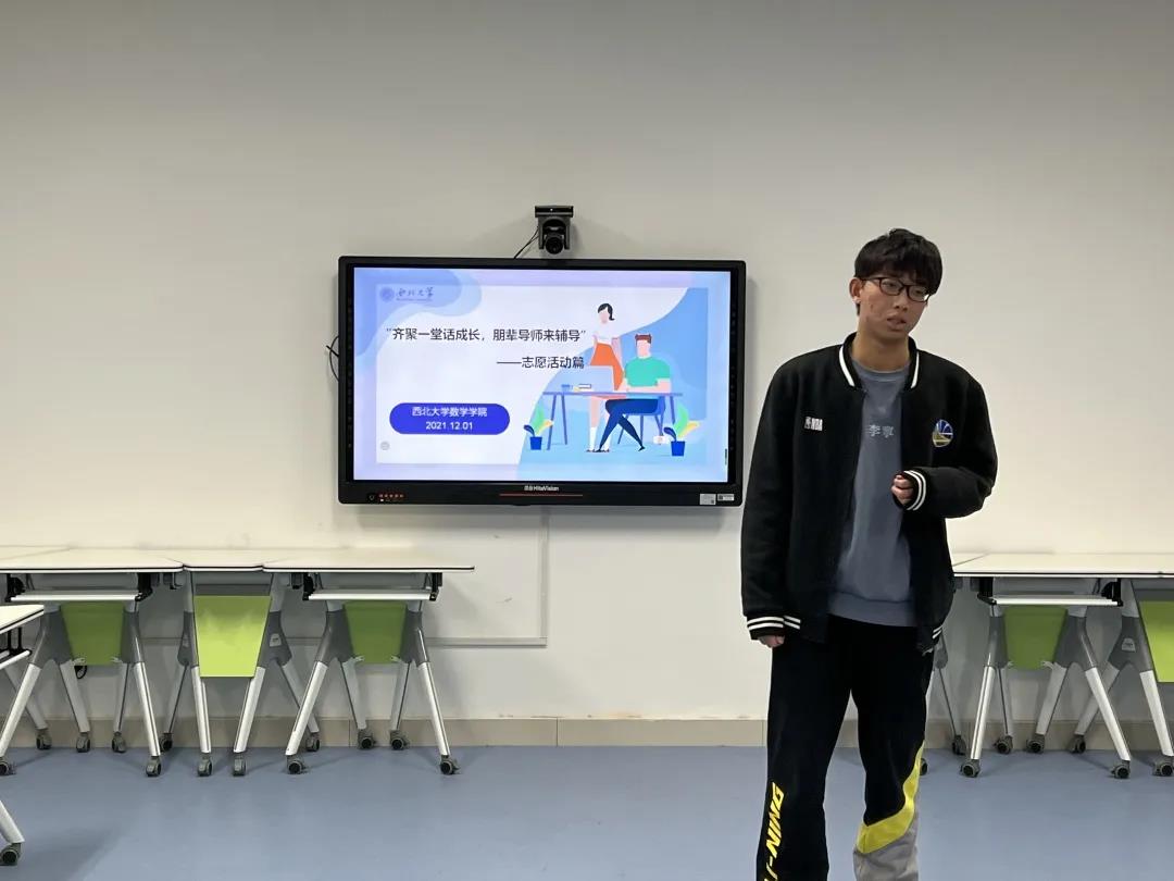 活动中,2020级应用统计学专业本科生赵轩,曾在校团委青年志愿者工作部秘书部工作,先后参与献血车进校园、校学代会场务服务、“志愿一心,益起行动”雷锋月纪念活动、挑战杯筹备工作等志愿服务活动。分享中,他提到9499www威尼斯团委青年志愿者工作部、9499www威尼斯唐仲英爱心社、9499www威尼斯常青数志愿者协会,这三个部门可以为大家提供参加志愿服务的机会,同时分享了自己参与志愿工作的感受,首先选择自己的感兴趣的志愿活动,热爱自己的志愿工作,同时坚持下去。