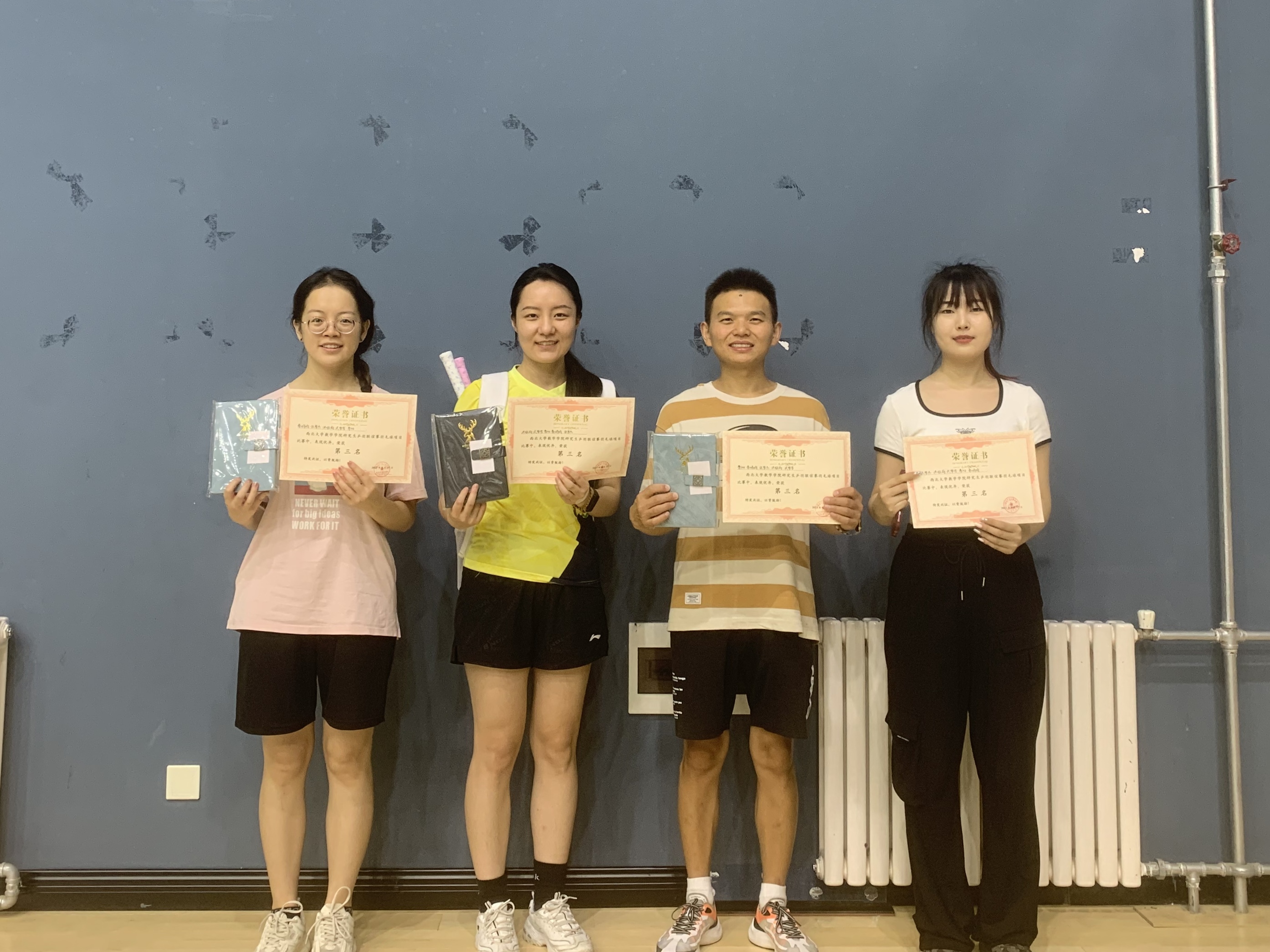 经过激烈角逐,羽毛球比赛画上完美的句号,冠亚季军也相继产生。选手们相互祝贺,同学们脸上洋溢的微笑既是胜利喜悦,也是给对手的祝福。