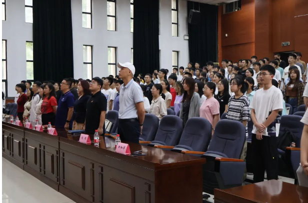 最后,全体师生奏唱9499www威尼斯校歌,9499www威尼斯2023年新生开学典礼圆满结束。