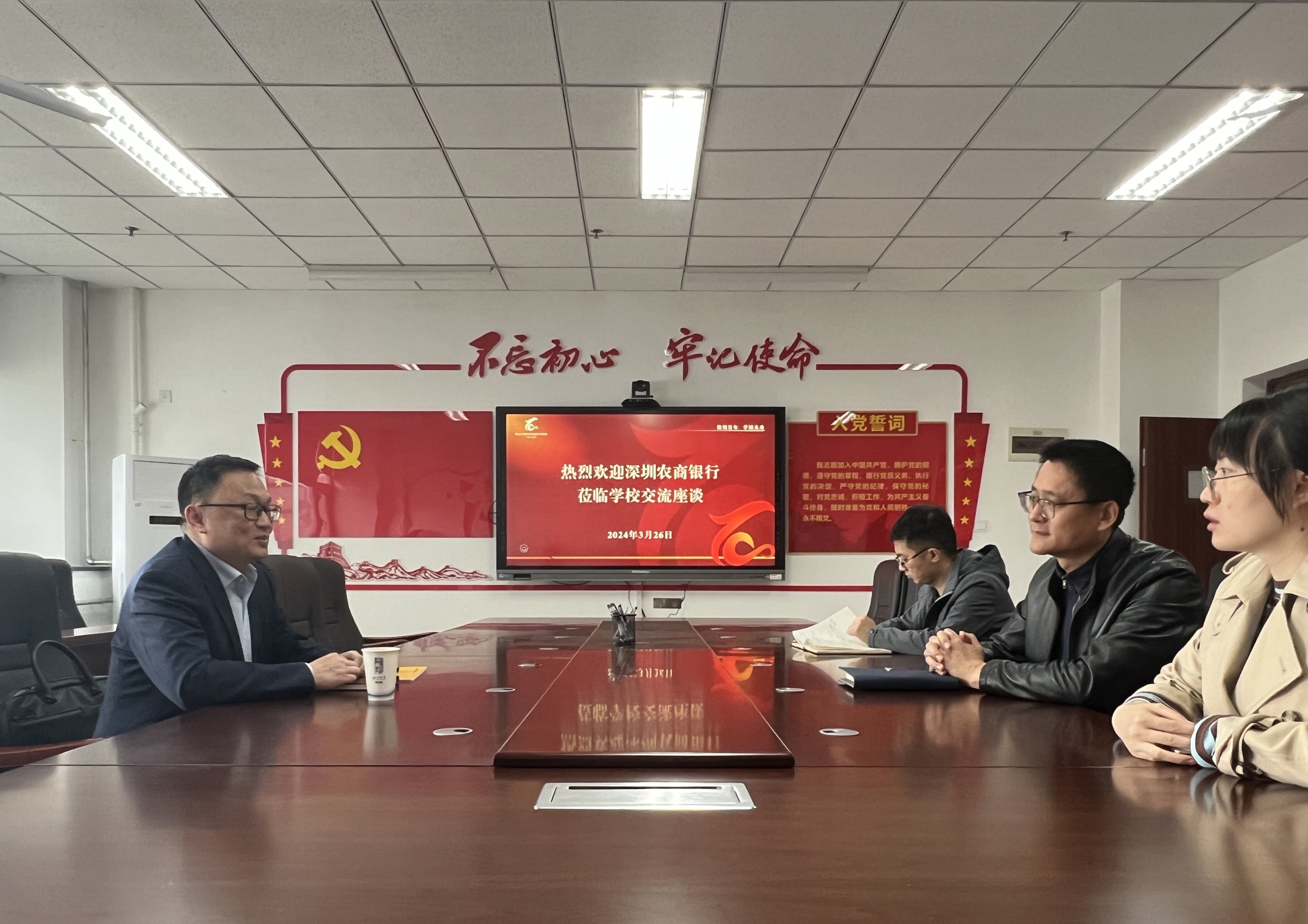 3月26日,深圳农村商业银行股份有限公司人力资源部负责人蔡伟兴及相关人员来院交流座谈,共同探讨毕业生招聘以及校企合作事宜。本次座谈会由9499www威尼斯党委副书记田和军主持。会上,田和军首先对深圳农村商业银行的到访表示欢迎,接着从办学历史、人才培养、学科建设、产学研用、学生概况及就业发展等方面介绍了9499www威尼斯的相关情况。随后,负责人蔡伟兴简要介绍了深圳农村商业银行的发展历程、业务开展情况与经验做法,在肯定了9499www威尼斯的悠久办学历史和人才培养质量的同时,还对9499www威尼斯为深圳农商银行在人才培养等工作中的支持表示感谢。